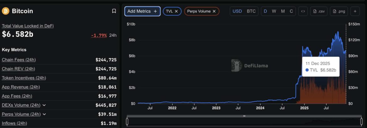 Data from DeFiLlama shows about $39.51M in BTC perpetual volume on Bitcoin-based protocols over the past day.